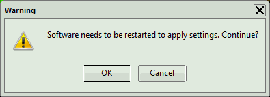 Response: A window pops up with the message that the software needs to be restarted to apply changes. Press OK.