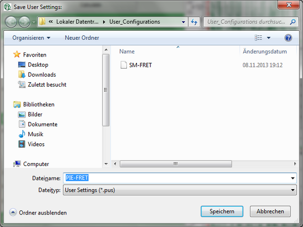 Response: A window pops up asking for a file name and a place to store the user configuration.