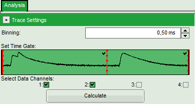 - In the “Trace Settings” on the left, change the binning to 0.5 ms.